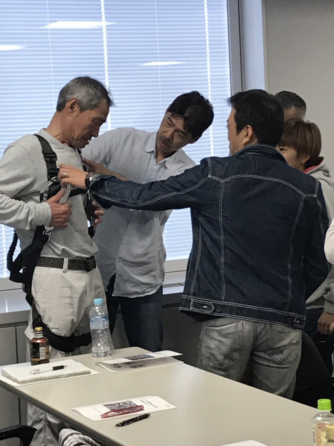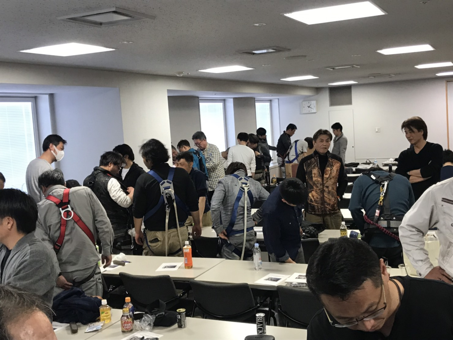 学科教育(4.5時間)+実技教育(1.5時間)の計6時間で、実技教育では実際にフルハーネスを各自装着し、正しい装着方法の指導がありました。長時間でしたが、皆さん真剣に受講していただきました。