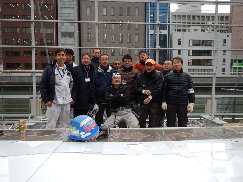 梅雨入りになっており当日は雨模様でしたが、そないに雨降らずで、事務局入れて参加者27名のご参加をいただきました。講習内容は大阪クロード様施工のLEDを裏側からも見学をさせていただいて、バンジージャンプして滑り台滑ってきました。