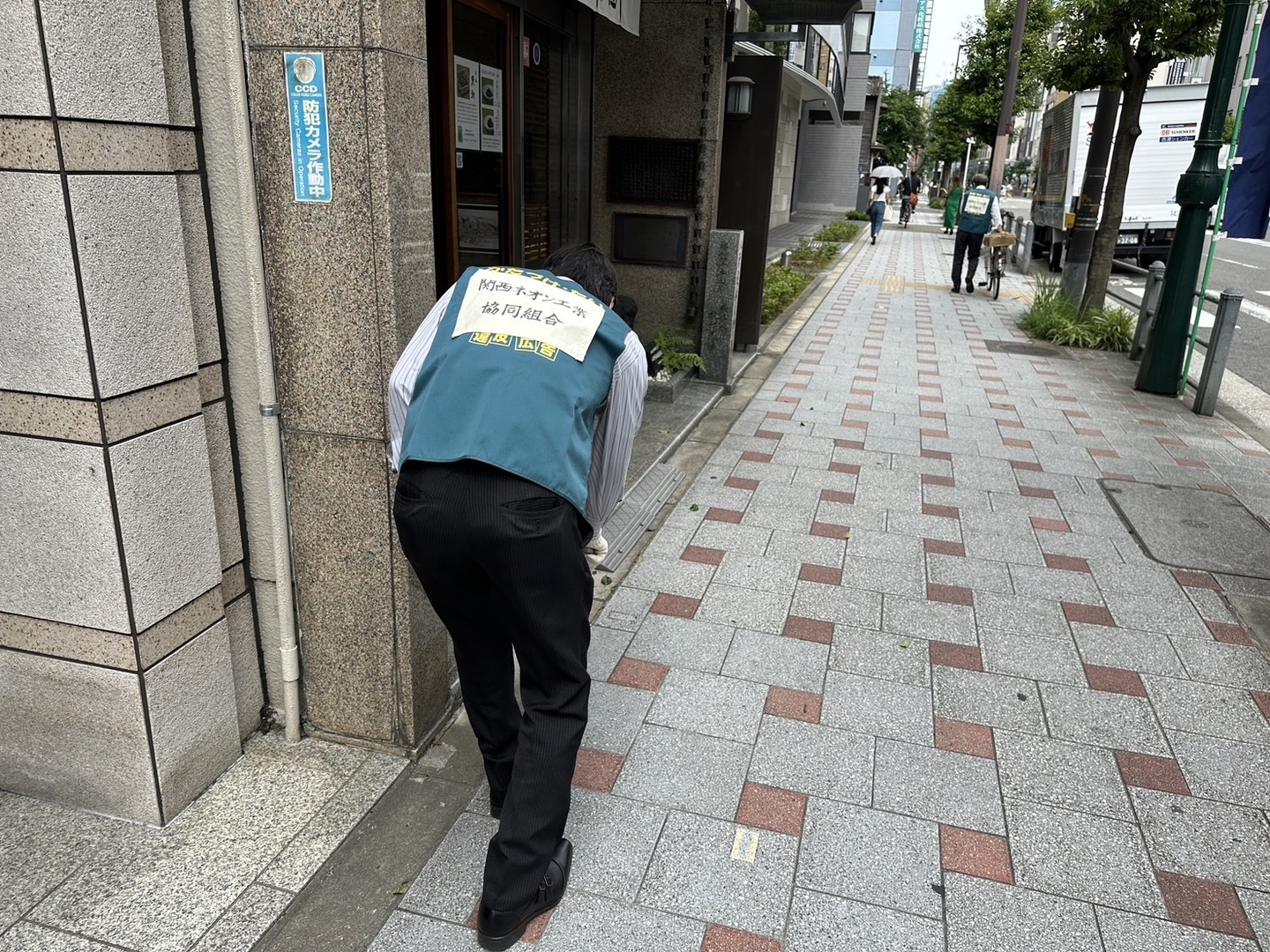 東警察署・大阪市建設局・市岡工営所・大阪市環境局・中央区役所の皆様方と、私たち関西ネオン工業協同組合で道路美化活動に参加させていただきました。